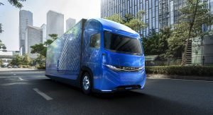It’s an all-electric heavy-duty truck that has a gross weight of about 23 tons (50,706lbs), and can carry a payload of approximately 11 tons (24,250lbs), which puts it just 2 tons (4,409lbs) short of its diesel counterpart.
