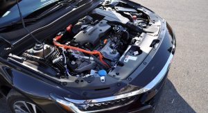 Since the car is still several months away from being launched, Honda was relatively coy on specifics. However, the company confirmed the Accord Hybrid has 2.0-liter four-cylinder engine that produces 143 hp (106 kW) and 129 lb-ft (174 Nm) of torque. It is backed up by a lithium-ion battery and an electric motor that develops 181 hp (135 kW) and 232 lb-ft (314 Nm) of torque. Honda says this gives the car a combined maximum output of 212 hp (158 kW).