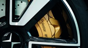 Polestar 1’s rear axle is powered by two electric motors that also enable torque vectoring for maximum grip and speed while cornering. A four-cylinder 2.0-liter Drive-E engine powers the front axle. The two rear electric motors produce 218hp, allowing the new performance model to run on electricity alone for 150km (93 miles), which is the longest all-electric range of any hybrid model in the market. Weight distribution is 48:52 front to rear while the brakes come from Akebono and feature six-piston calipers and 400mm discs.