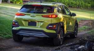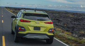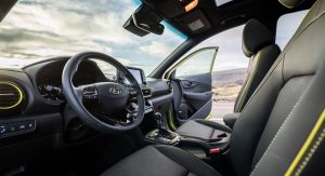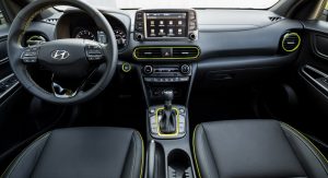 Customers in the U.S. will be offered two choices: an entry-level 2.0-liter four-cylinder petrol than runs on the Atkinson cycle and produces 147hp and 132lb-ft of torque and the turbocharged 1.6-liter with direct injection which makes 175hp and 195lb-ft of torque. 2.0-liter models are paired to a six-speed automatic while the more powerful turbocharged Konas are fitted with a seven-speed dual-clutch automatic.