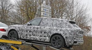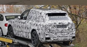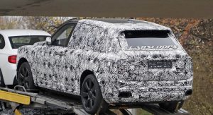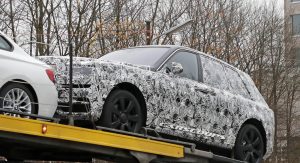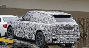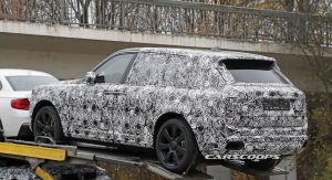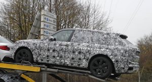 Spotted by our spy photographers sitting on the back of a transport trailer, this prototype for the model tentatively known as Project Cullinan has shed some of the camouflage we’ve seen in previous spy images.