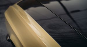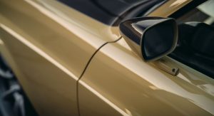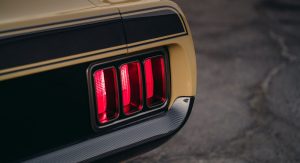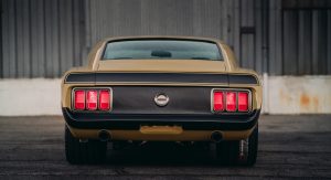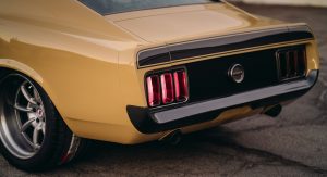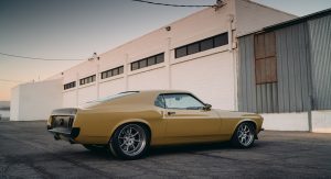 Like other recent projects from SpeedKore, Downey Jr’s Mustang has been adorned in lightweight carbon fiber body panels, including the hood, bumpers, fenders, quarter extensions, and front and rear spoilers. The exterior was then painted in PPG Khaki yellow.