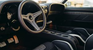 In the cabin, Gabe’s Street Road Custom Interiors worked its magic and fitted a pair of bucket seats, stunning dark brown leather, a bespoke steering wheel, and a unique air conditioning system.