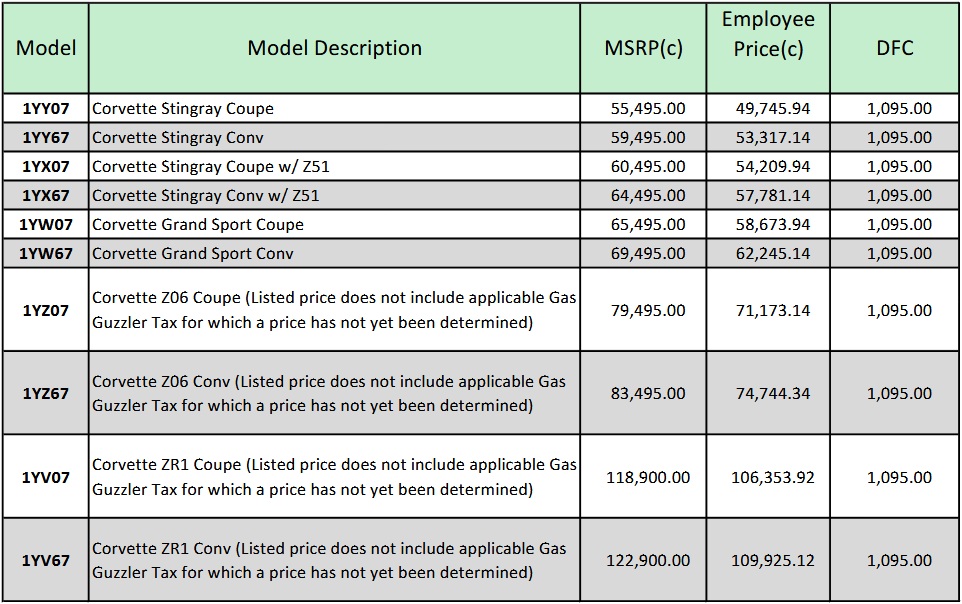 The highly desirable Corvette ZR1 Coupe and ZR1 Convertible will become available from $119,995 and $123,995, respectively, once they go on sale next spring. Both numbers include the delivery fee, but not the gas-guzzler tax, whose price has yet to be determined.