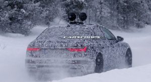 Also, and despite the camouflage tape hiding it, the rear end is expected to feature an LED stripe between the taillights, similar to those found in the A8 and of course the A7.