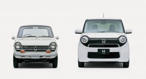 You don’t need to look into Honda’s crystal ball, though, to see a cool-looking retro design. You can get one right now… if you live in Japan. It’s the N-One, arguably the cornerstone (and the best-looking) of a range of stylish little Kei cars that Honda offers in its home market.