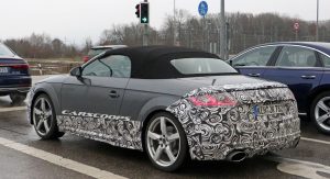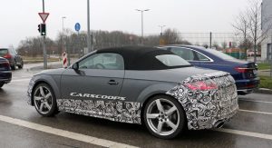 Audi is working on the mid-life update of the TT, with the first spy shots showing a TT-RS roadster being tested on public roads.