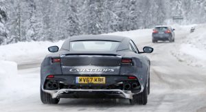 The rear end is expected to follow the design cues of the smaller Vantage, including a continuous LED strip for the taillights and a retractable rear spoiler.