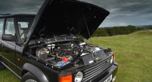 What looks like a Range Rover Classic is reportedly based in actuality on the Land Rover Discovery 3, overlaid with the iconic sheetmetal of the first-gen Range Rover, and backed up by serious muscle: under the hood is the 6.2-liter supercharged V8 out of the old Cadillac CTS-V, kicking out 556 horsepower and 551 lb-ft of torque.
