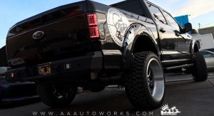 One of the things that stands out on this particular Ford F-150 are the wheels. Made by Forgiato and fitted by California’s AAAutoworks, the 24-inch rims, wrapped in 35-inch tires, are part of the Terra Off-Road Series. They’re offered in two other sizes too, in 22- and 26-inches, and can be finished in a variety of shades.