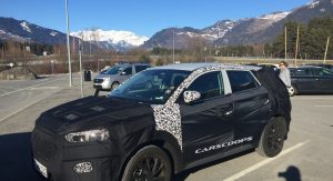 Compared to the last test car we showed you, this one was spotted in Switzerland by Vassili Haritos, appearing to be wearing exactly the same body covers which mask the entire front and rear end, as well as the door panels.