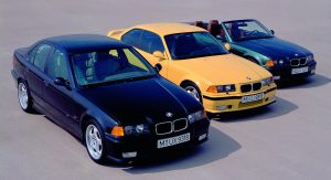 Launched as a four-door sedan, the E36 marked a bigger leap forward, being significantly larger and more spacious while also introducing the Z-Axle Multilink rear suspension that hugely improved handling. A two-door coupe was unveiled in 1992, with the convertible and the new M3 following shortly after.
