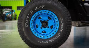 Block’s two-door Maverick X RS Turbo has been specifically modified for some high-speed desert hoonage. It comes with a custom Lonestar Racing roll cage and long travel suspension kit, Dragonfire racing doors and steering wheel, Can-Am wide flares, Rigid Industries R46 lights, a custom brush guard, custom embroidered seats and one-off beadlock fifteen52 Turbomac HD wheels, rocking Toyo Tires.