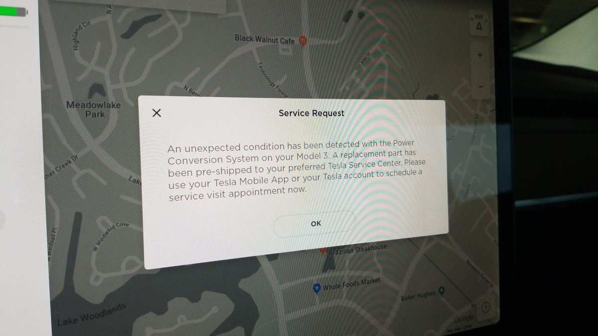 The owner of a Tesla took to Reddit a few days ago to post an image showing the service request notification they received on the infotainment screen of their Model 3.