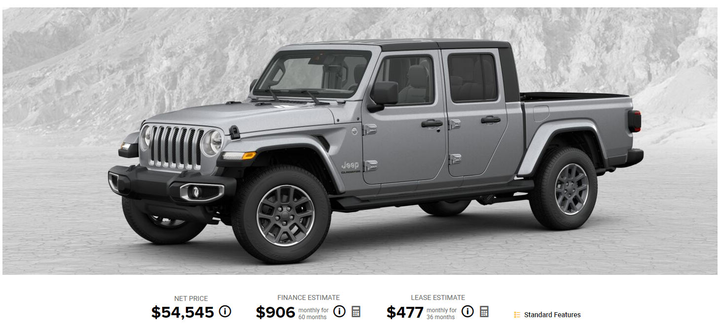 If price is a factor, you’ll have to make some obvious tradeoffs. That being said, you can get a decent Gladiator for around $37,475. For that price, you get a three-piece hardtop, tinted rear windows, a spray-in bedliner and the trailer tow package which includes a heavy duty cooling system, a beefier alternator and a class IV receiver. Of course, you’ll have to stick with the manual and make do with a five-inch infotainment system.