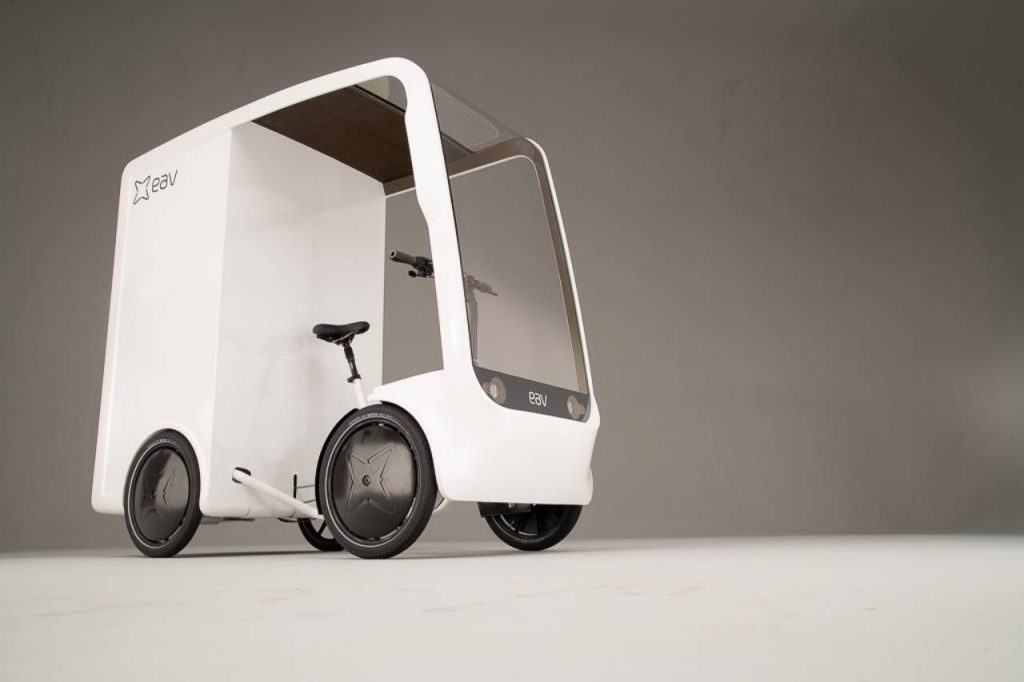 According to EAV, the vehicle is engineered “down” from a van rather than “up” from a bicycle. “Getting people out of vans and onto eCargo bikes isn’t easy if they think it’s going to be an awful experience. Being exposed to the elements or being low to traffic isn’t going to appeal to anyone,” explains Adam Barmby, Technical Director and Founder of EAV.