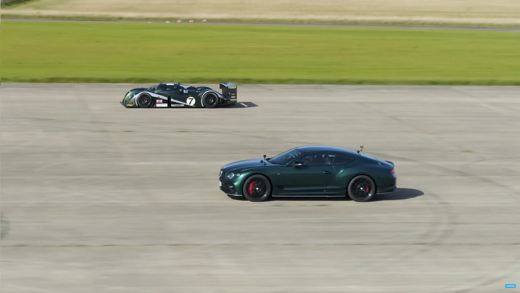 Even when he gave himself a head start of several feet, the Le Mans racer caught and passed the Continental GT before the half-mile had elapsed, but only just. And that should hardly come as a surprise, since the Bentley Speed 8 was designed for Le Mans’ Mulsanne straight.