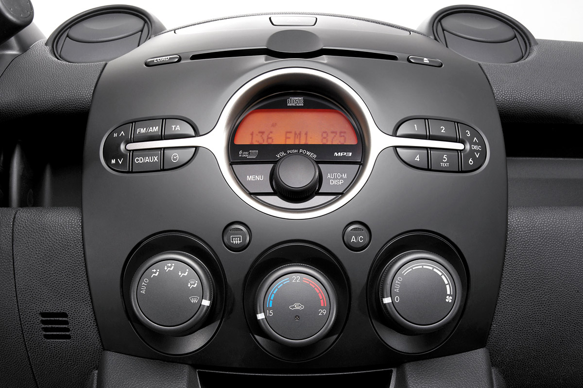 Despite the dark-colored interior trim of the car shown here, it’s obvious that Mazda designers wanted to create a “playful” environment for the Mazda2 – Demio. Maybe a bit too playful as the center console with the side air-vents looks like “Mickey-Mouse”, but ok, I definitely prefer this interior than the boring-to-death cabin of the current model.