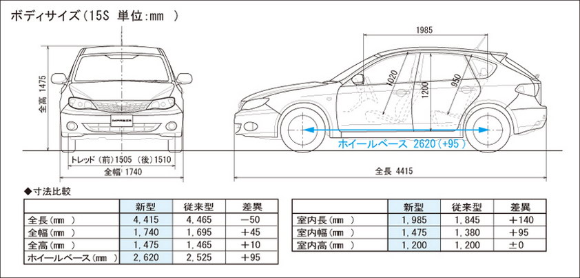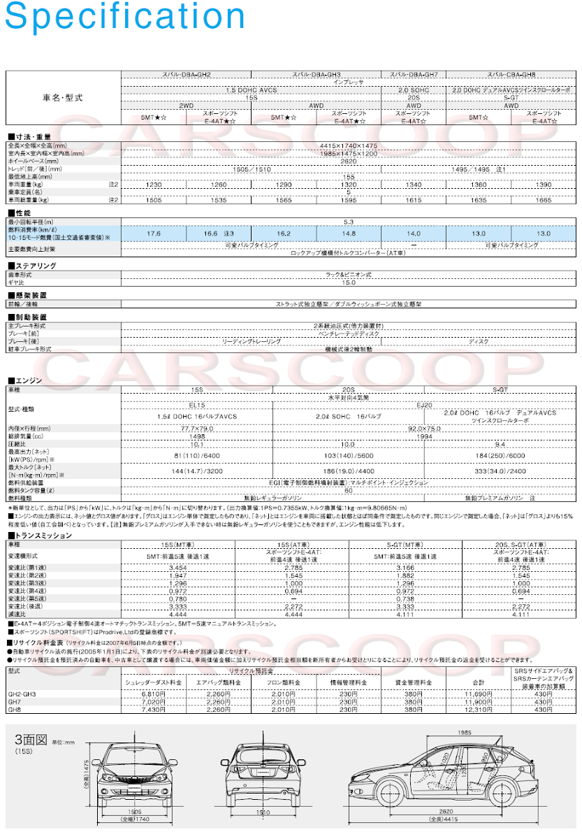 • The Impreza 15S is the basic model built for handling and performance in harmony with fuel efficiency and environmental considerations.