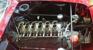 Out went the 6 cylinder and 5 speed, in went a BMW V12 and Getrag 6 speed (think BMW 850csi). The engine has been converted to dry sump, manual Dellorto throttles, and has no distributors. Fuel and ignition is managed by an Electromotive Tec3r computer. The weight is about 2200lbs, and it’s RHD in America (to make it different from all the other replica 250 GTO’s out here.