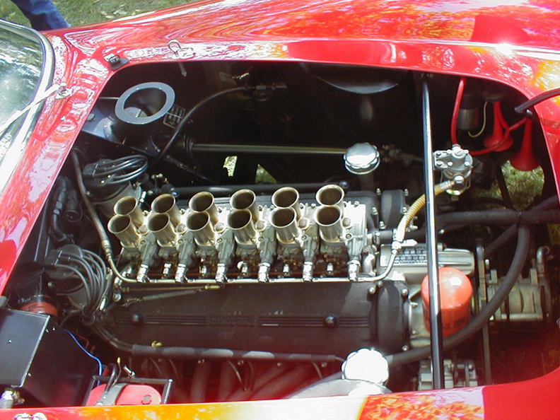 Out went the 6 cylinder and 5 speed, in went a BMW V12 and Getrag 6 speed (think BMW 850csi). The engine has been converted to dry sump, manual Dellorto throttles, and has no distributors. Fuel and ignition is managed by an Electromotive Tec3r computer. The weight is about 2200lbs, and it’s RHD in America (to make it different from all the other replica 250 GTO’s out here.