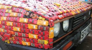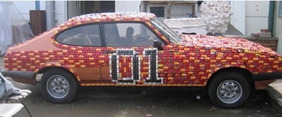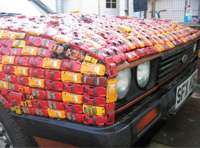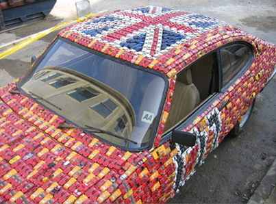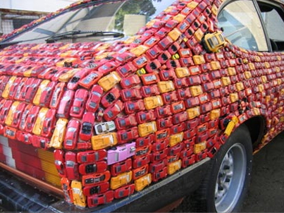 What do you get when you combine a Ford Capri coupe, more than 4,000 toy cars and artist with a fling for the Dukes of Hazzard? Answer: the “General Carbuncle”. We won’t pretend to understand the thoughts hidden behind the creation of Brit artist, James R. Ford so we’ll just lay out the facts and leave you to decide.James Ford started this project in 2004 when he bought a used Ford Capri coupe in 2004 for a mere £99 with the sole intention of completely covering it in toy cars in the appropriate colours (mainly red and orange) to pay homage to the famous “General Lee” Charger from the Dukes of Hazzard. Ford completed the car in late 2006. Interestingly enough, many people donated toy cars to help Ford out, including one person from as far away as Australia.-Follow the jump to see more pictures along with highlights and interesting facts from the project