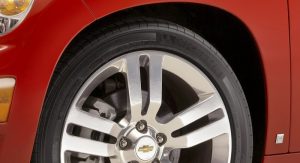 The disc brakes are visible behind one of the HHR SS’s most distinguishing features: a set of 18-inch polished forged aluminum wheels. The wheels have a Corvette-inspired split-spoke design and ride on SS-specific Michelin Pilot Sport performance tires that are rated for all-season driving.