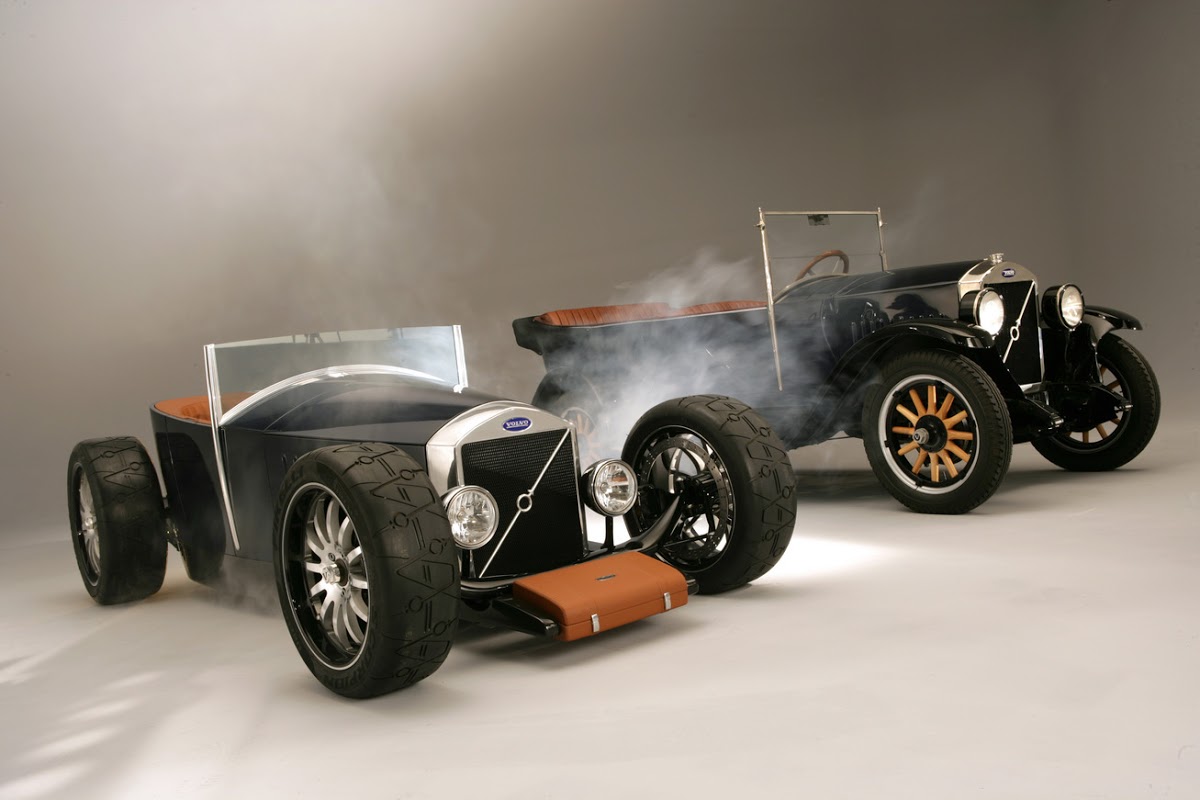 Parked side by side, the similarities between old and new are remarkable. The curvature of the bonnet has exactly the same radius. The characteristic windscreen attachment pillar that runs down the body side follows the original in detail as regards dimensions, materials and the number of screws used. Equally identical is the radiator grille with its characteristic mesh pattern and diagonal bar that incorporates the classic iron symbol. The body has been built by hand from raw aluminium panels that were bent into their final shape using a hammer and English wheel. Exactly as it was done in the prototype workshop back in the 1920s.
