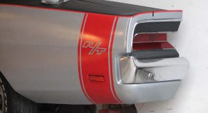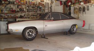 Before you start cursing the owner of this late 60’s Dodge Charger, allow us to inform you that when Randy Randy Zaborniak purchased the vehicle for spare parts, it was nothing but a burnt-out wreck. After removing all the parts that he could use, Randy thought it would be a great idea to slice the Charger, give it a decent paint job and mount it on his garage wall. Not bad at all. –More pics after the jump