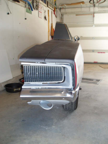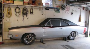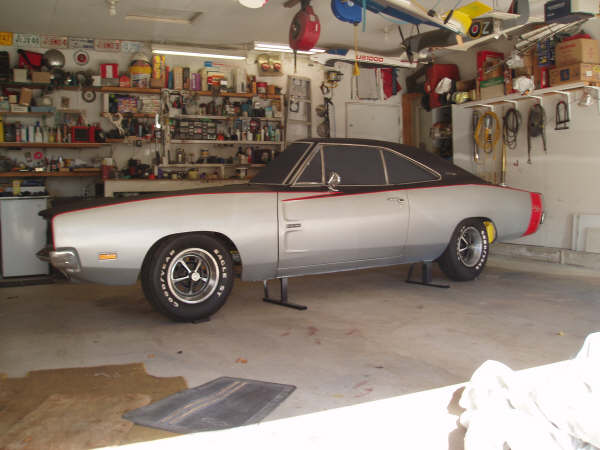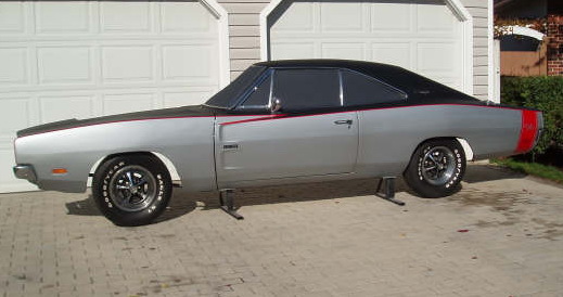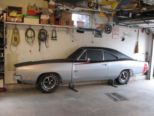 Before you start cursing the owner of this late 60’s Dodge Charger, allow us to inform you that when Randy Randy Zaborniak purchased the vehicle for spare parts, it was nothing but a burnt-out wreck. After removing all the parts that he could use, Randy thought it would be a great idea to slice the Charger, give it a decent paint job and mount it on his garage wall. Not bad at all. –More pics after the jump