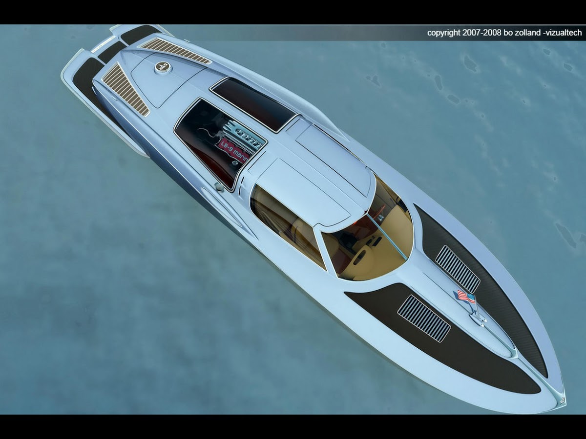 There’s some sort of connection between fast cars and boats that makes designers like Bo Zolland from Sweden attempt to unite the two different worlds with creations like this 1963 Corvette inspired speed boat. Although just a rendering, according to Zolland, there’s a company in Sweden called “Stand-Craft” that can create one-off production boats based on concept drawings such as this. Just don’t forget your cheque book on your way out… -More images after the jump