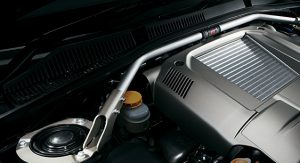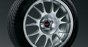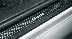 Other mechanical upgrades include a sport suspension, revised steering system (13:1 ratgio) and more powerful six-pot front and two-pot rear Brembo brakes. Apart from the subtle STi bodykit that includes a carbon-fiber front spoiler, the S402 Legacys feature wider fenders (+20mm) that host a set of beautiful 18-inch BBS alloys wheels wrapped in Bridgestone Potenza RE050A tires (235/40R18). Inside the most prominent features are the leather front bucket seats, the MOMO steering wheel and the “S402” plates. -Image Gallery after the jump