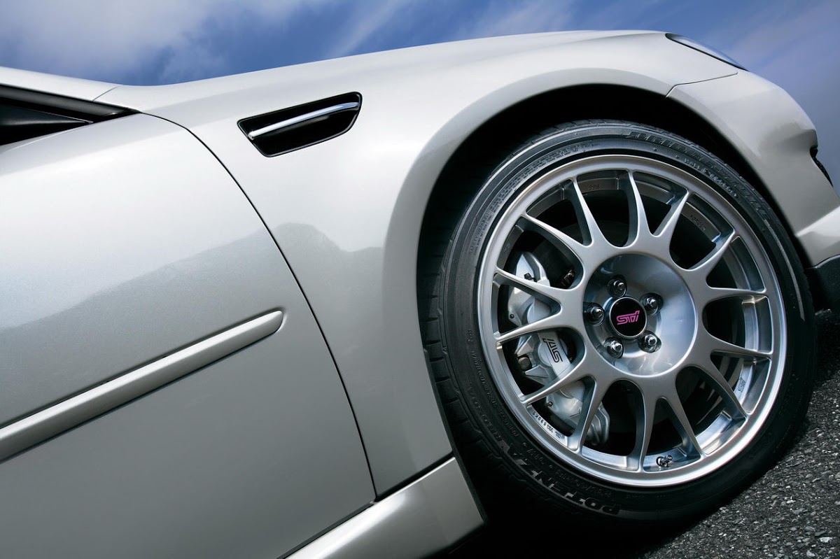 Other mechanical upgrades include a sport suspension, revised steering system (13:1 ratgio) and more powerful six-pot front and two-pot rear Brembo brakes. Apart from the subtle STi bodykit that includes a carbon-fiber front spoiler, the S402 Legacys feature wider fenders (+20mm) that host a set of beautiful 18-inch BBS alloys wheels wrapped in Bridgestone Potenza RE050A tires (235/40R18). Inside the most prominent features are the leather front bucket seats, the MOMO steering wheel and the “S402” plates. -Image Gallery after the jump