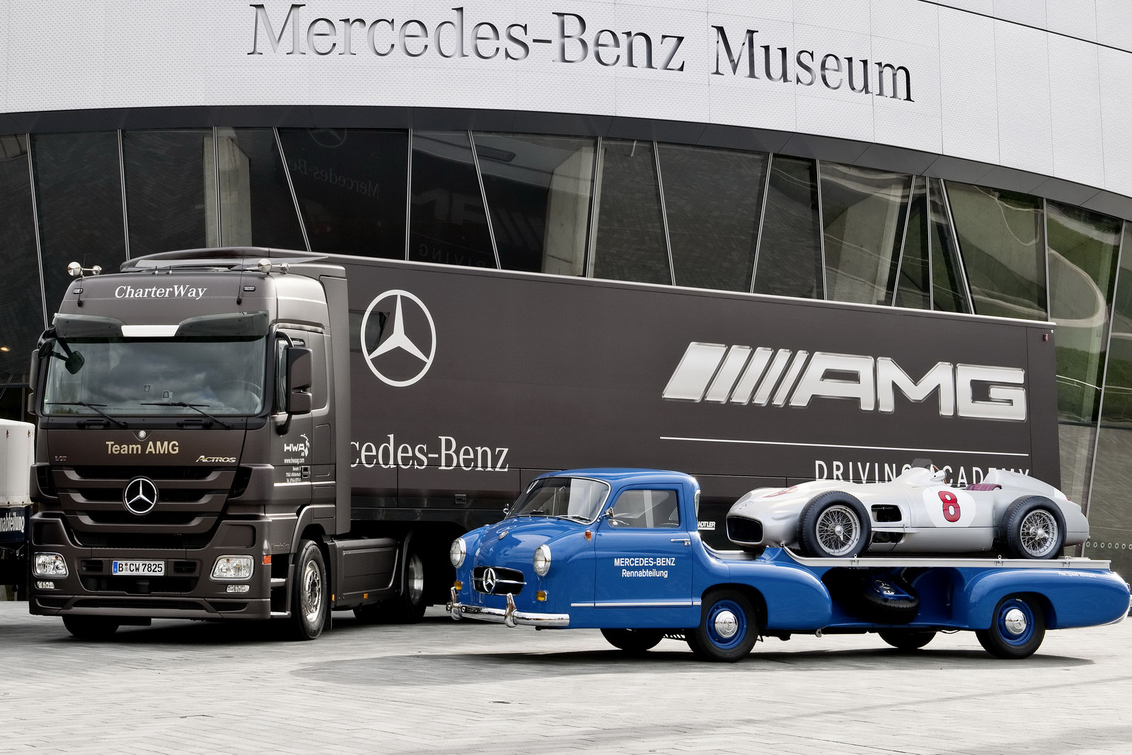 As for the other two trucks featured here, the Mercedes-Benz Lo 2750 is a completely restored model from 1936 equipped with a four-cylinder petrol engine while the 4-meter tall and 16.5-metre long 2009 Actros Truck that’s powered by a V8 turbo diesel currently serves as a carrier for Mercedes-Benz’s Formula 1 and DTM racing cars.