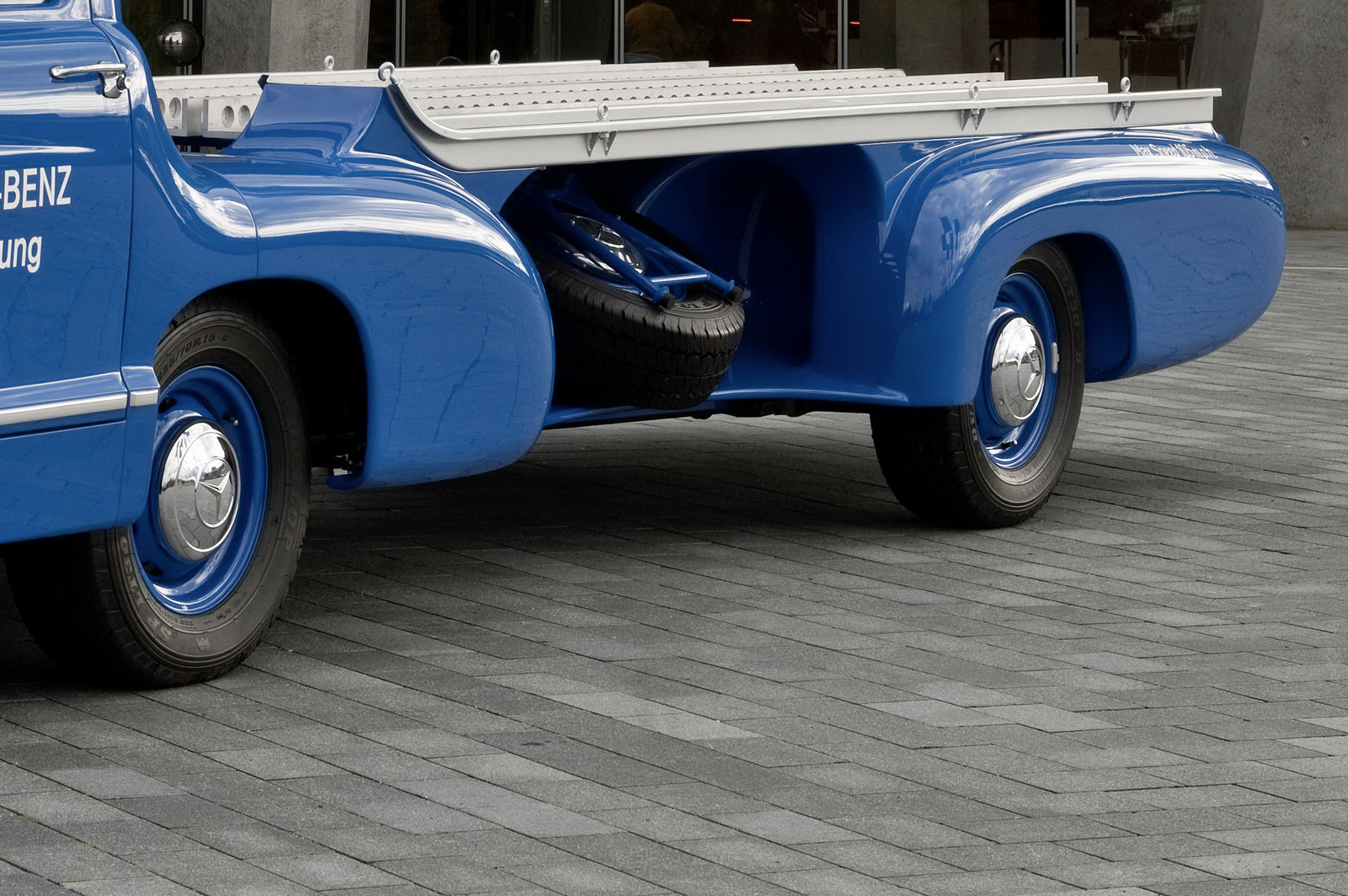 The 6.75-metre-long and two-meters-wide hauler used a lengthened tubular frame from the Mercedes-Benz 300 S luxury coupe of the era.