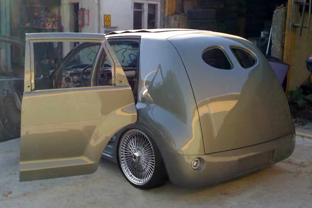Among many other mods, the owner fitted a pair of suicide rear doors, a custom made rear end with split rear window and unique LED tail lamps, and reworked fascia, hood and C-column.