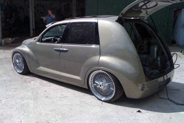 The PT-Cruiser also features an air suspension system and a sliding canvas ragtop while it rides on 18-inch front and 20-inch rear ‘wire’ wheels.