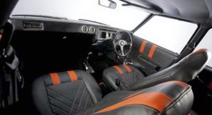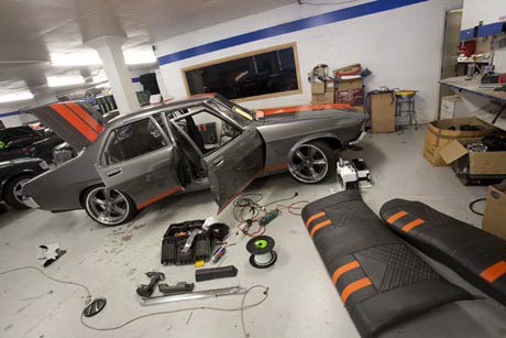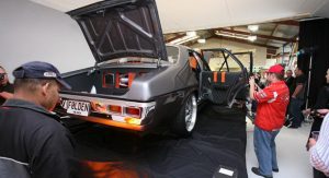 Other treats include one-off Chip Foose 20-inch alloy wheels, a gun metal gray paint job with orange racing stripes, a custom interior fully rebuilt, high-end audio system, and last but certainly not least, a cool badge that puts the Mustang horse and Holden lion together.