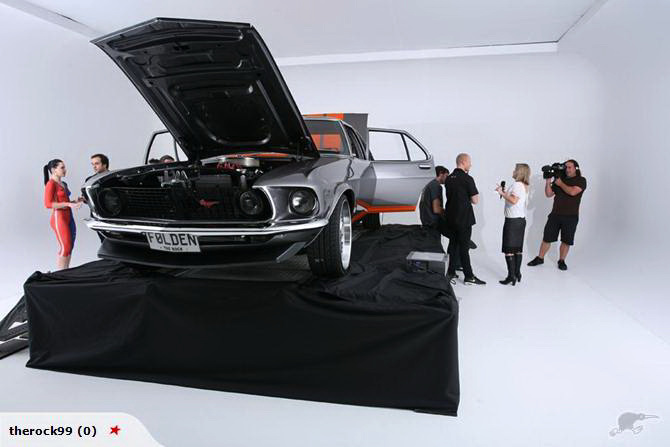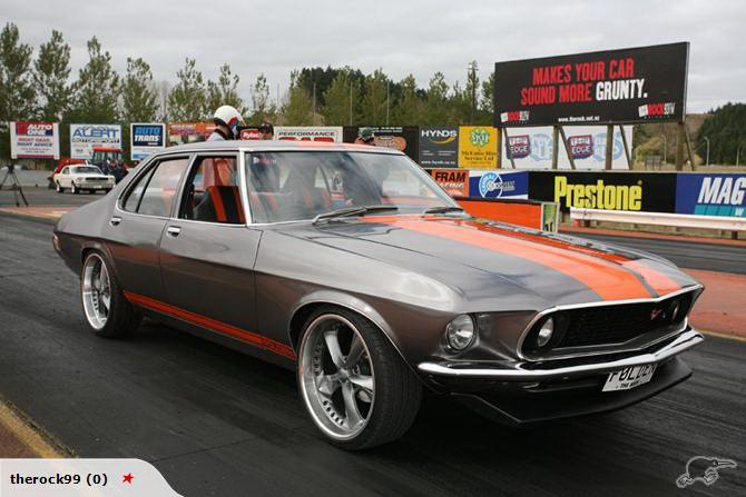 Is it a Holden? Is it a Ford? Well, according to the folks from the New Zealand music radio station, ‘The Rock’, neither. They say it’s a Folden and it was born from the unholy -or so to speak- union of a Holden HQ and a 1969 Ford Mustang.