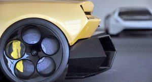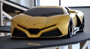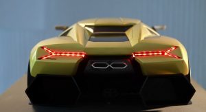This here is the Lamborghini Cnossus, a design study for a supercar concept named after the ancient Greek city of Cnossus (Knossus) on the island of Crete. The eye-catching Cnossus was designed by Russian student Victor Filipchenko with the help of his Portuguese colleague Nelson Simoes as part of their final thesis project at Italy’s Scuola Politecnica di Design.