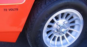 The mechanicals are fairly standard for a homebuilt electric car. Power comes from an 8 hp (6 kW) electric motor and twelve 6 volt batteries (for a total of 72 volts) connected in-series. The former is bolted straight onto the drive shaft. The Legrand uses a manual gearbox, though there are no gears: just forward and reverse. The accelerator is used to control how much current goes to the motor, which in turn changes the vehicle’s speed.