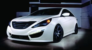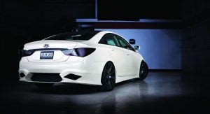 In what is surely a sign of the times, Hyundai will be represented by a slew of customized cars at the 2010 SEMA Show, which runs from November 2 to 5. For the creation of this nicely done example of the 2011 Sonata Turbo, Hyundai teamed up with RIDES and 0-60 magazines. According to the South Korean automaker, the customized Sonata Turbo’s styling was inspired by Ferrari, Mercedes and Porsche models.