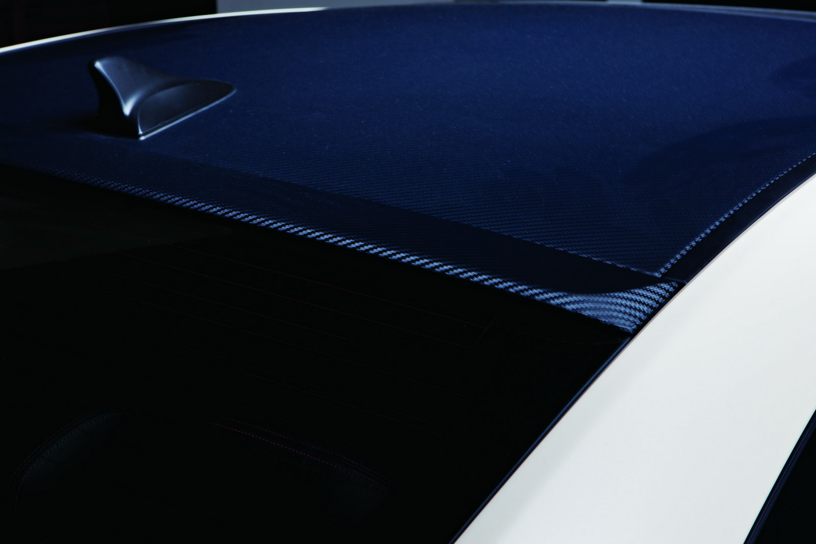 The designers claim to have used styling cues from the four-door Brabus Mercedes CLS Rocket for the car’s exterior modifications, which combine a matte pearl white paint with a set of blacked out 20-inch wheels, custom LED fog lights, and a slew of carbon fiber parts including the roof, grill, side mirrors and rear diffuser.