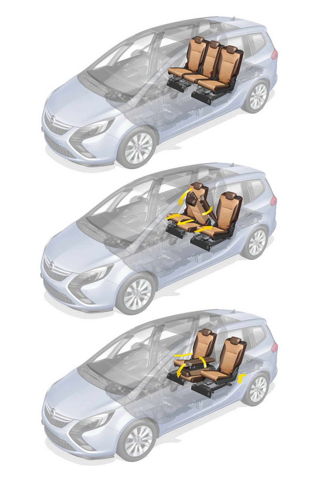 According to the company, the Zafira Tourer offers 710 liters load volume in a five-seat configuration, or 65 liters more than the current model, and up to 1,860 liters (+40 liters) when the two rear rows of seats are folded down.