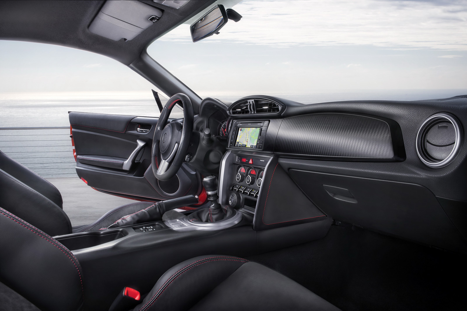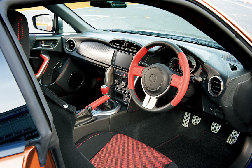 The dashboard gets a carbon-effect trim, while there’s all-black roof lining, red stitching on the upholstery, aviation-style rocker switches and lightweight, aluminium pedals.The GT 86 is also fitted with 365mm diameter steering wheel, which is said to be the smallest ever fitted to a production Toyota.
