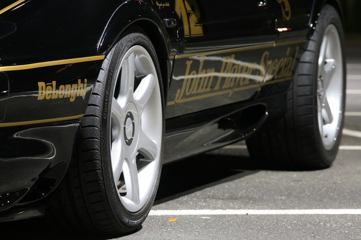 Visually, Cam-Shaft dressed the Esprit V8 in a John Players Special-theme wrap inspired from the Lotus F1 team of the time.