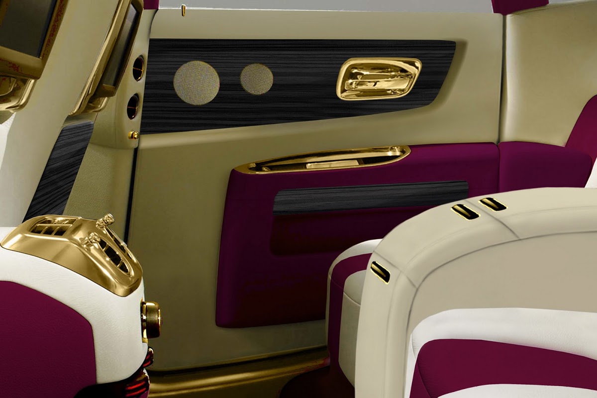 More gold can be found in the British limousine’s interior, which will also be customized in terms of styling and materials to match the outside theme.