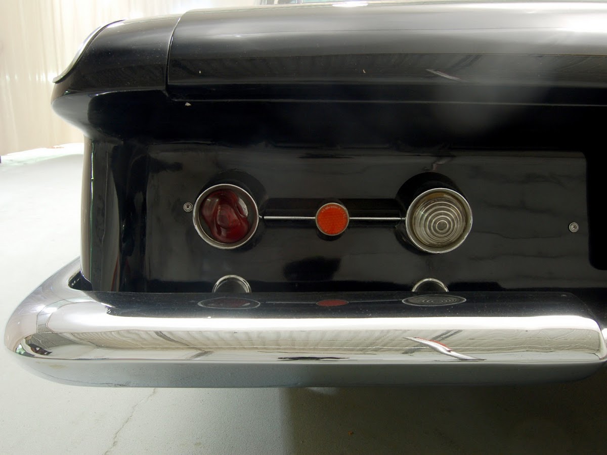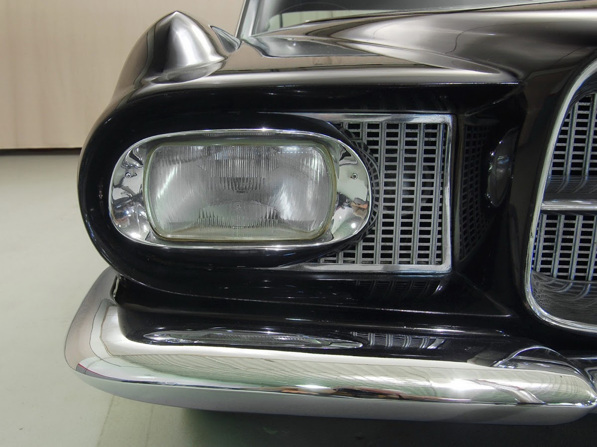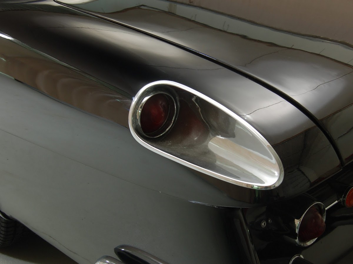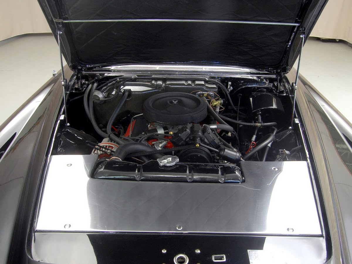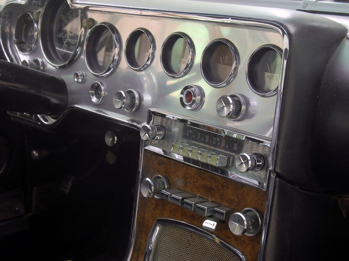 Finished in black that highlights its body lines and the vast glass area of its greenhouse, the oval headlights reflect Barris’s touch. It is fitted with a Nardi woodrim steering wheel and all the luxury touches expected of an exclusive Sixties semi-custom.