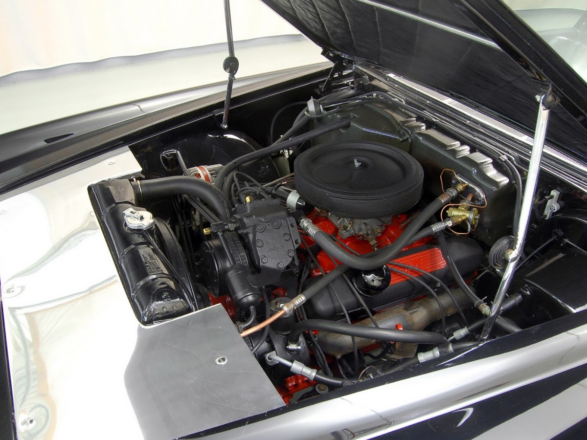 Power comes from a 335hp Chrysler 383 cubic inch V-8 with TorqueFlite 3-speed automatic transmission, power steering, power brakes and air conditioning. Chrome wire wheels with narrow whitewall tires are highlighted by thin chrome accents around the wheelwells and along the rocker panels nicely setting off thin chrome front fender vent trim.