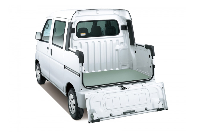 We’re not sure what you can squeeze in the Sambar Open Deck’s flatbed (…or is that a flat cradle?), but Subaru says that the vehicle can easily accommodate four passengers in the cabin area.